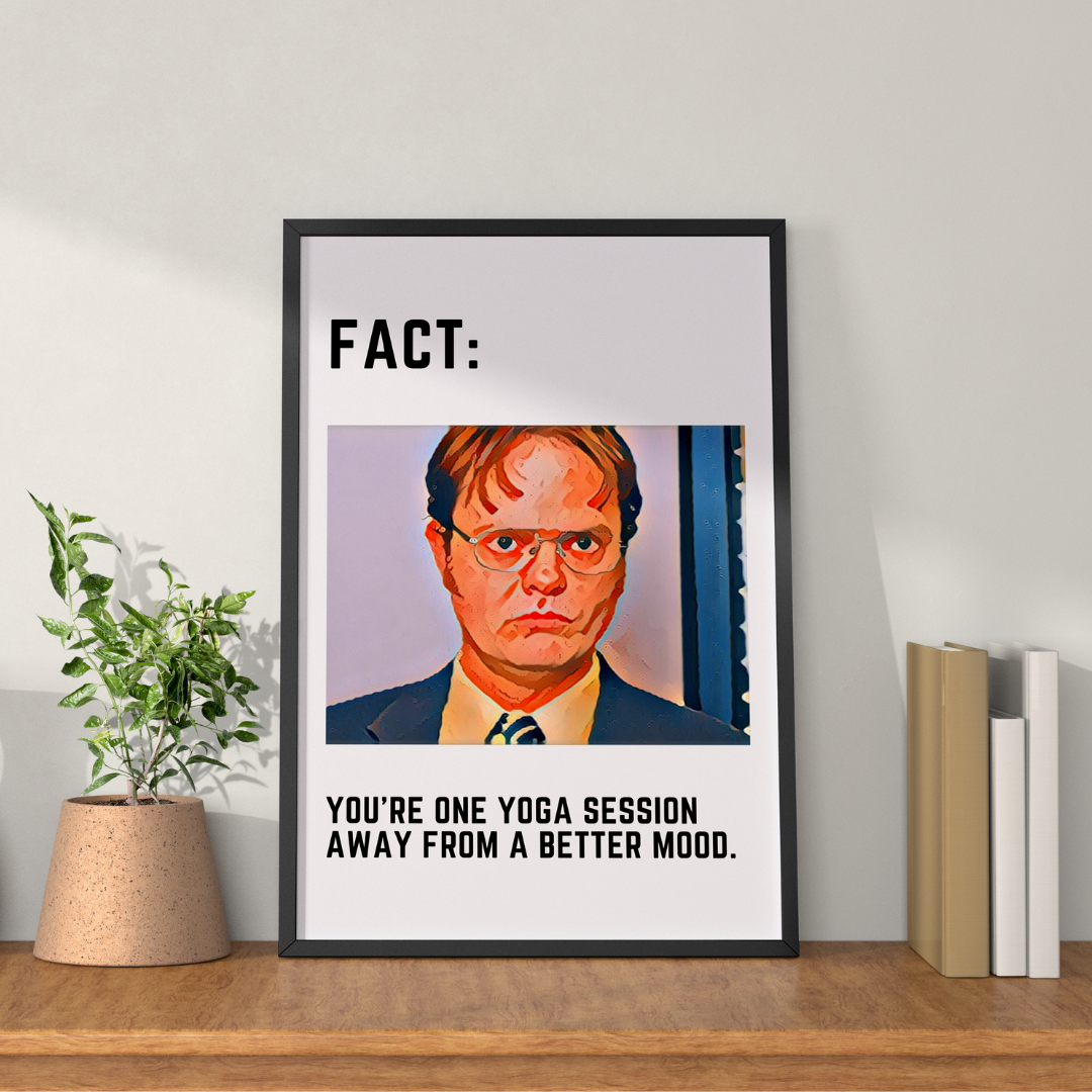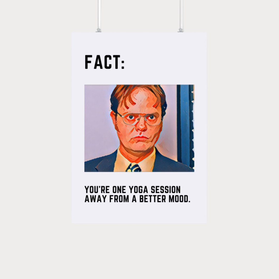 Hang it in your home or yoga studio, and let Dwight Schrute inspire you daily.