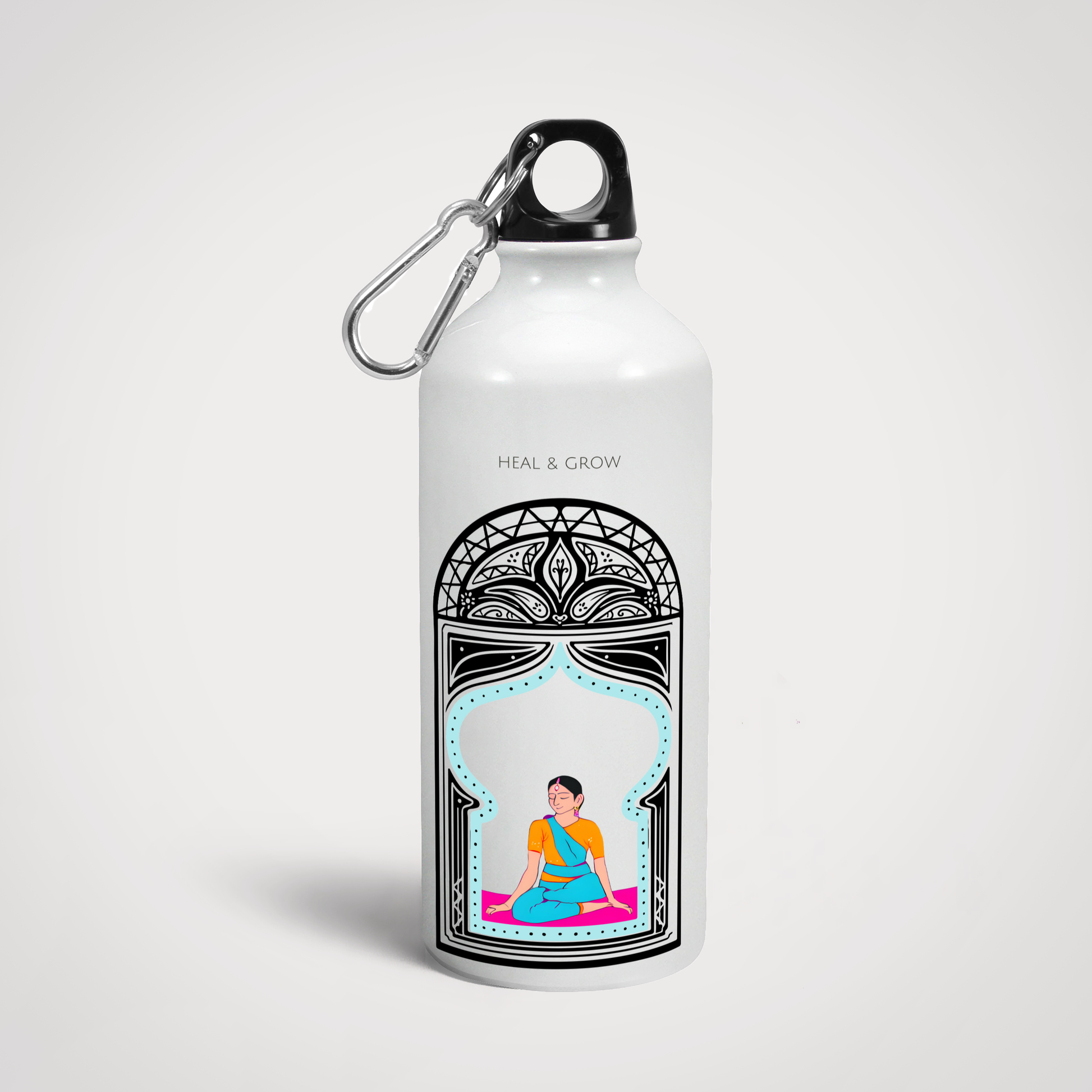 This Window Water Bottle is the perfect companion for a modern yogi. Crafted with artisanal precision out of lightweight aluminium, it features Indian representations while maintaining a modern, sleek aesthetic. Its 750ml size makes it perfect for hydration on the go.